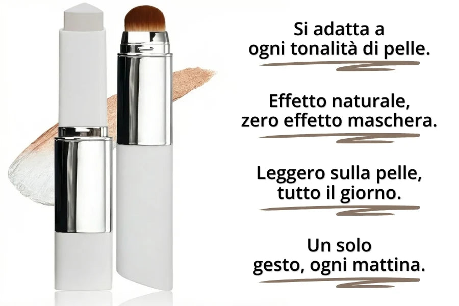 Tecnologia dei Pigmenti Adattivi – Micro-capsule intelligenti che si adattano al colore della pelle per una corrispondenza perfetta e naturale.