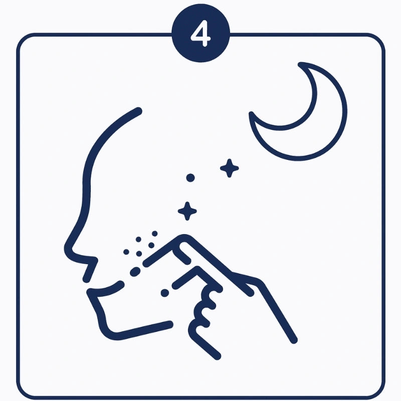 Apply the freshly activated serum evenly to your face using clean fingertips or a soft brush. Focus on areas with fine lines, dryness, or uneven tone. Let the formula fully absorb and leave it on overnight.